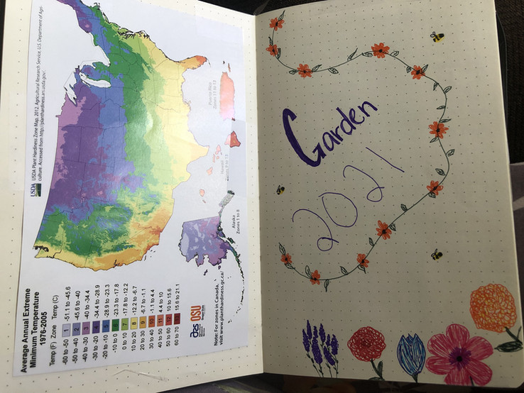 The fall & winter of 2020, I expanded my garden journaling to clippings I found in garden magazines and seed catalogues. These clippings provided recommended planting and harvesting times, fertilizers, organic pesticides and tips for keeping pests away, and plants I wanted to try either for ornamental reasons or to attract fauna to my garden. So this year my garden journal became a journal/ scrapbook.